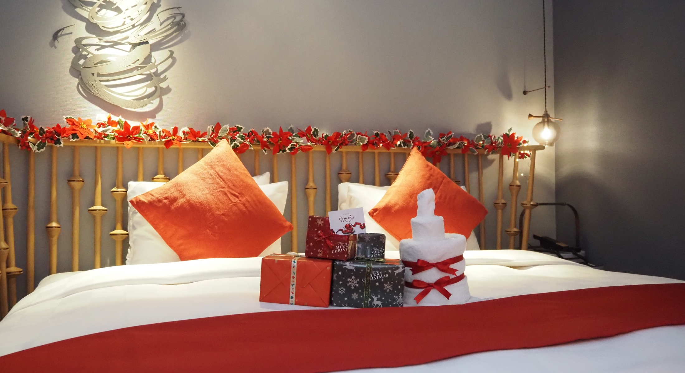 特別なデコレーションやスパークリングワイン、クリスマスプレゼントとしてプチギフトもご用意したとっておきの一室。